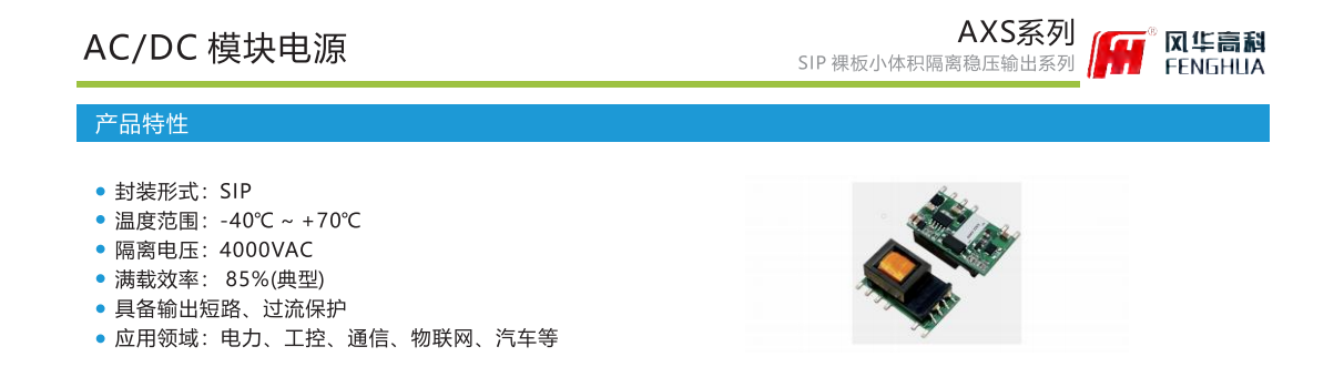 產品特性:封裝形式:SIP溫度范圍:-40℃~+70℃隔離電壓:4000VAC滿載效率: 85%(典型)具備輸出短路、過流保護應用領域:電力、工控、通信、物聯(lián)網、汽車等