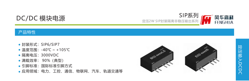 產品特性:封裝形式:SIP6/SIP7溫度范圍:-40℃~+105℃隔離電壓:3000VDC滿載效率:90%(典型)。引腳標準:國際標準引腳方式應用領域:電力、工控、通信、物聯(lián)網、汽車、軌道交通等