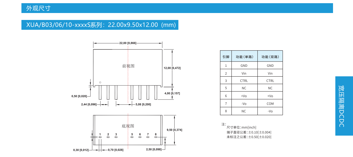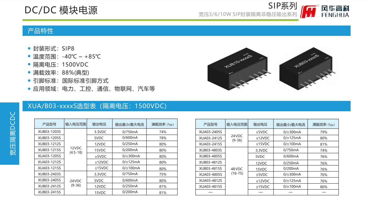 產(chǎn)品特性:封裝形式:SIP8溫度范圍:-40℃℃~+85℃隔離電壓:1500VDC滿載效率:88%(典型)引腳標(biāo)準(zhǔn):國(guó)際標(biāo)準(zhǔn)引腳方式·應(yīng)用領(lǐng)域:電力、工控、通信、物聯(lián)網(wǎng)、汽車(chē)等