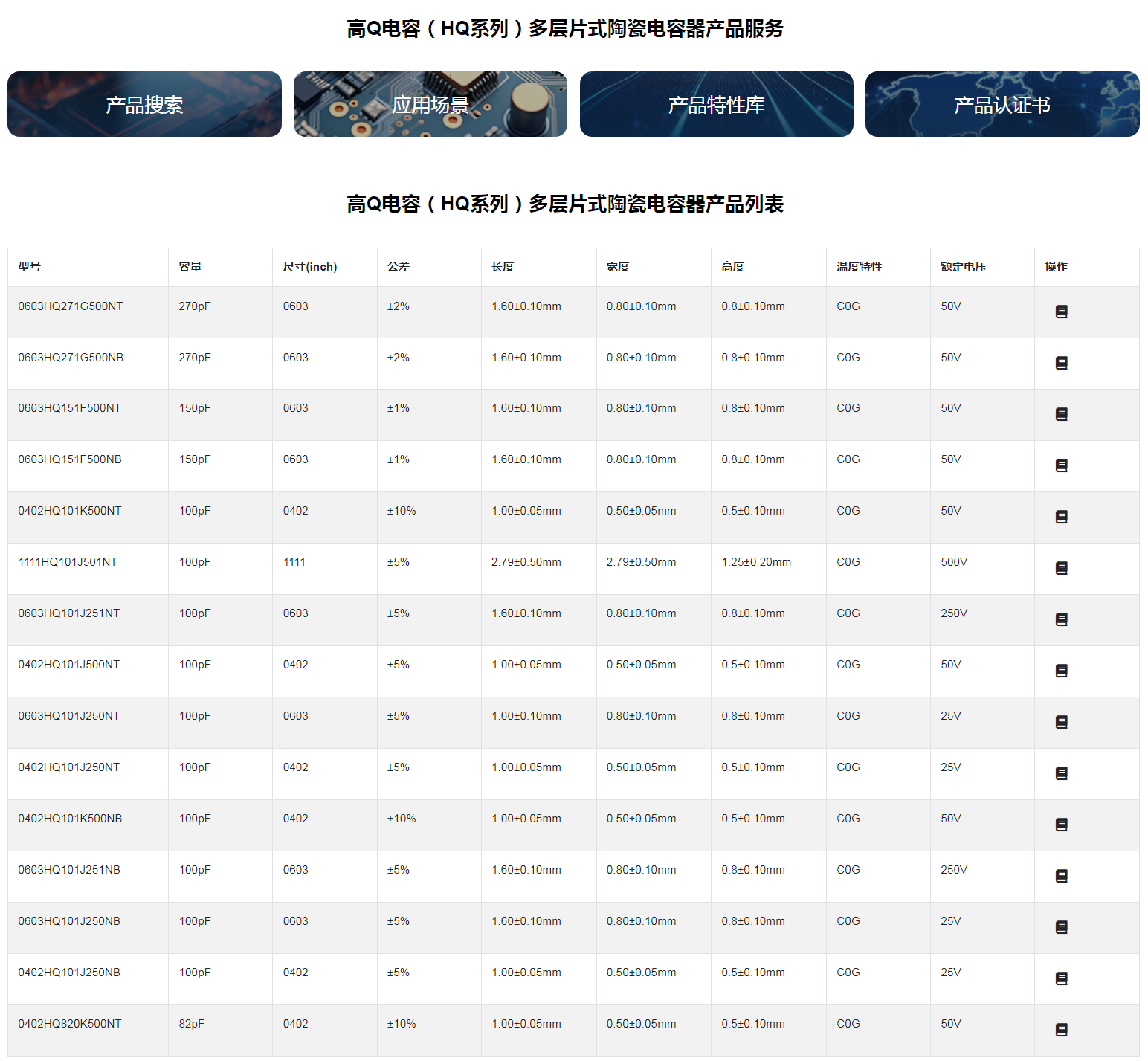 ■高 Q 片式多層陶瓷電容器◆特征* 疊層獨石結構,具有高可靠性能* 具有優(yōu)良的焊接與耐焊性能,適用于回流焊接與波峰焊接* 具有較高的容量且容量性能穩(wěn)定* 內部電極采用銅金屬漿料* 高 Q 值High Q* 低等效串聯(lián)電阻* 執(zhí)行標準:GB/T 21041-2007◆應用* 通訊設備* 射頻功率放大器* 濾波網(wǎng)