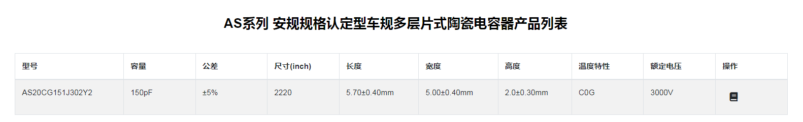 ■ AS系列 安規(guī)規(guī)格認定型車規(guī)多層片式陶瓷電容器