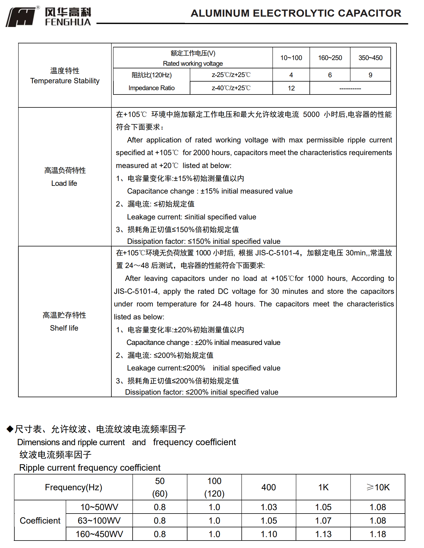 壽命: 105℃ 2000小時;