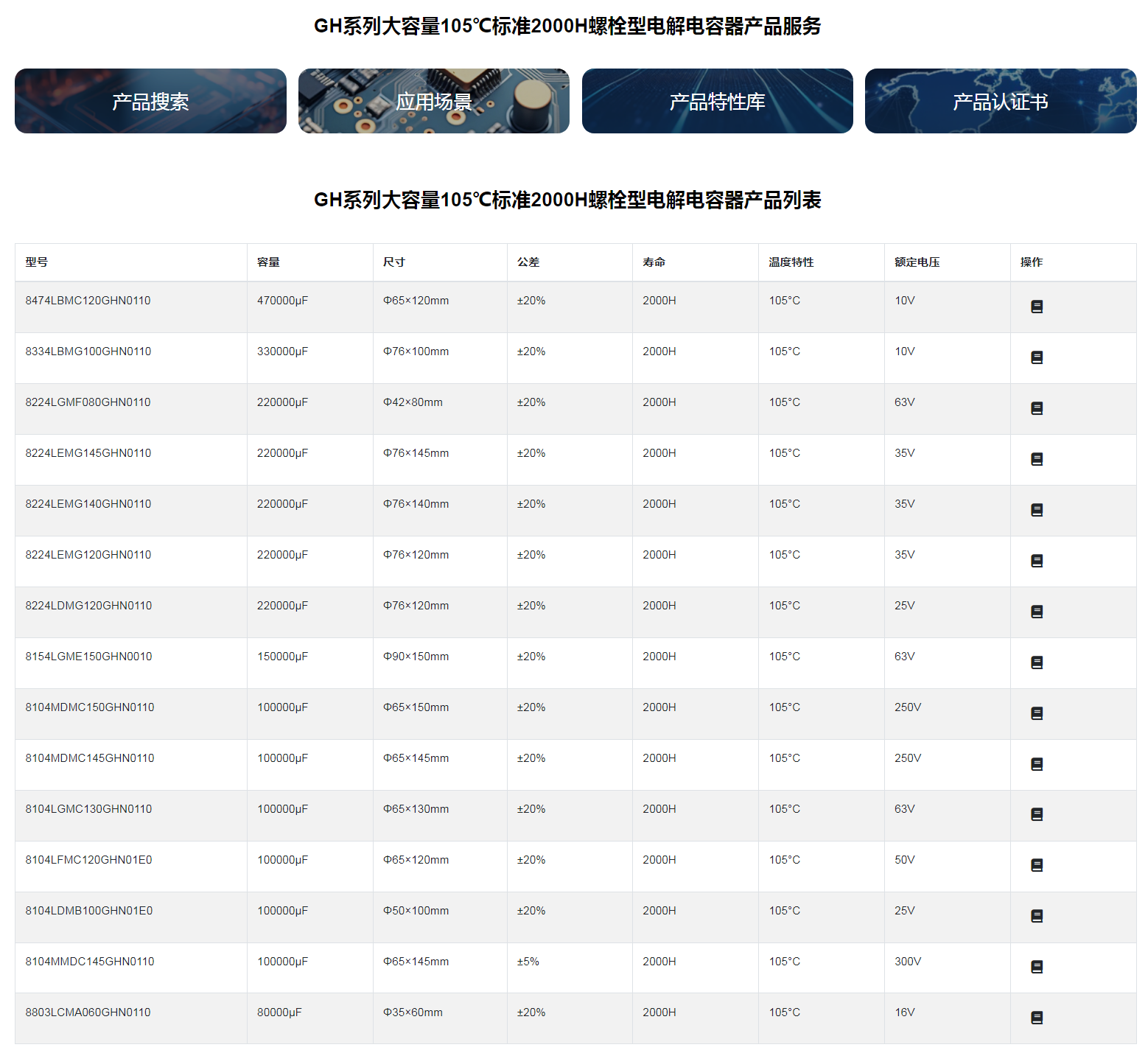 GH系列大容量105℃標準2000H螺栓型電解電容器