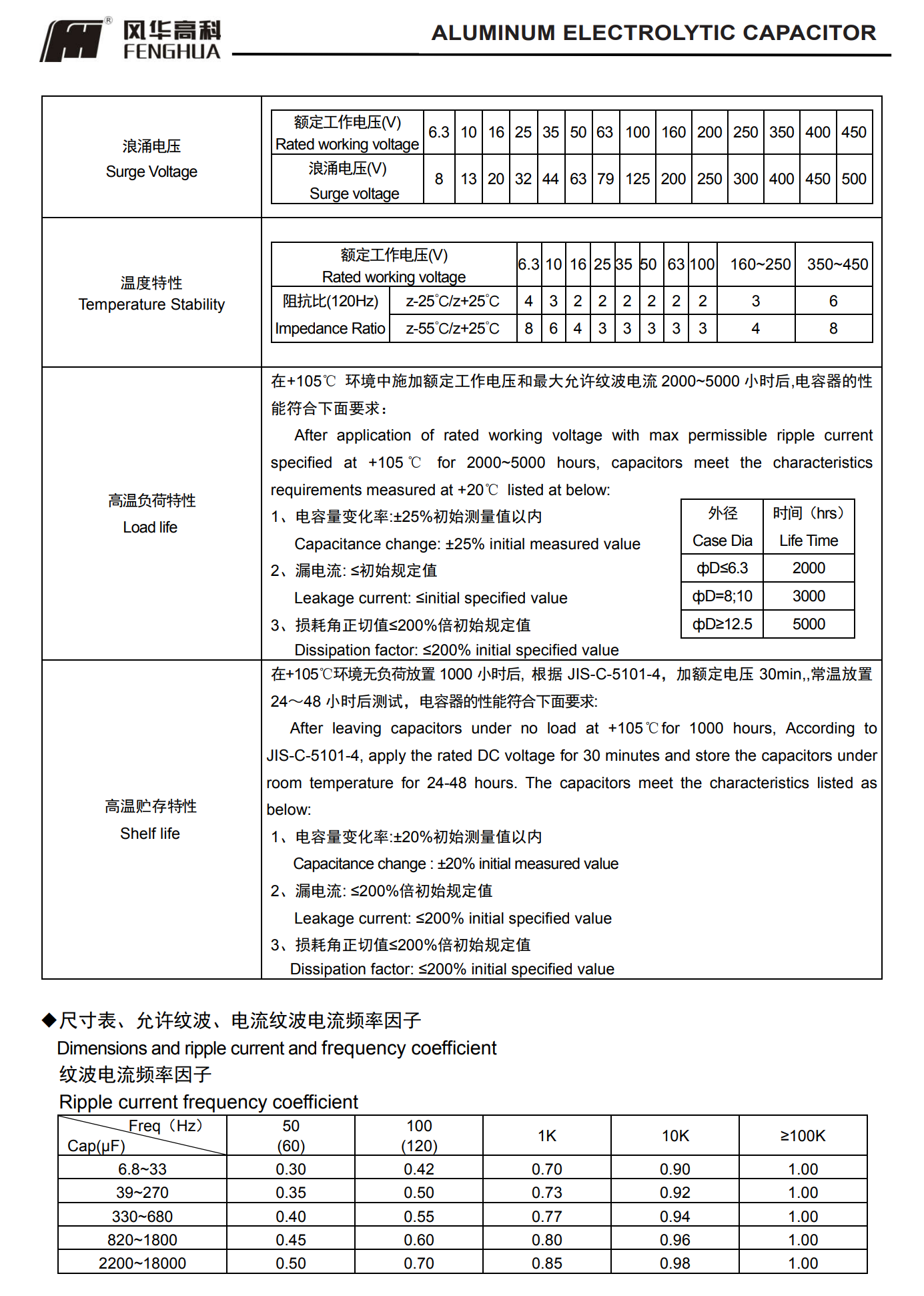 * 壽命: 105℃ 2000~5000 小時(shí)