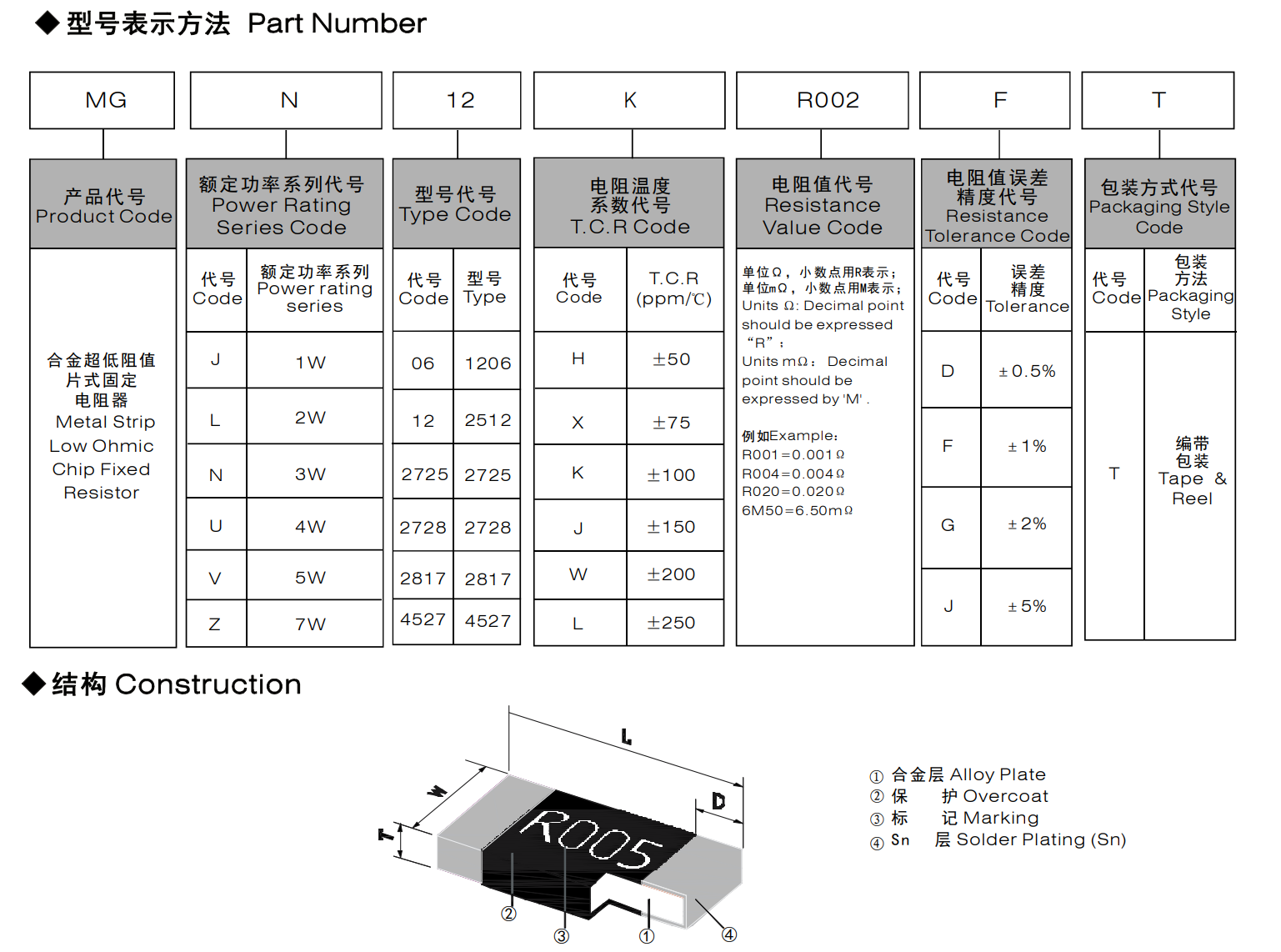 合金超低阻值片式固定電阻器