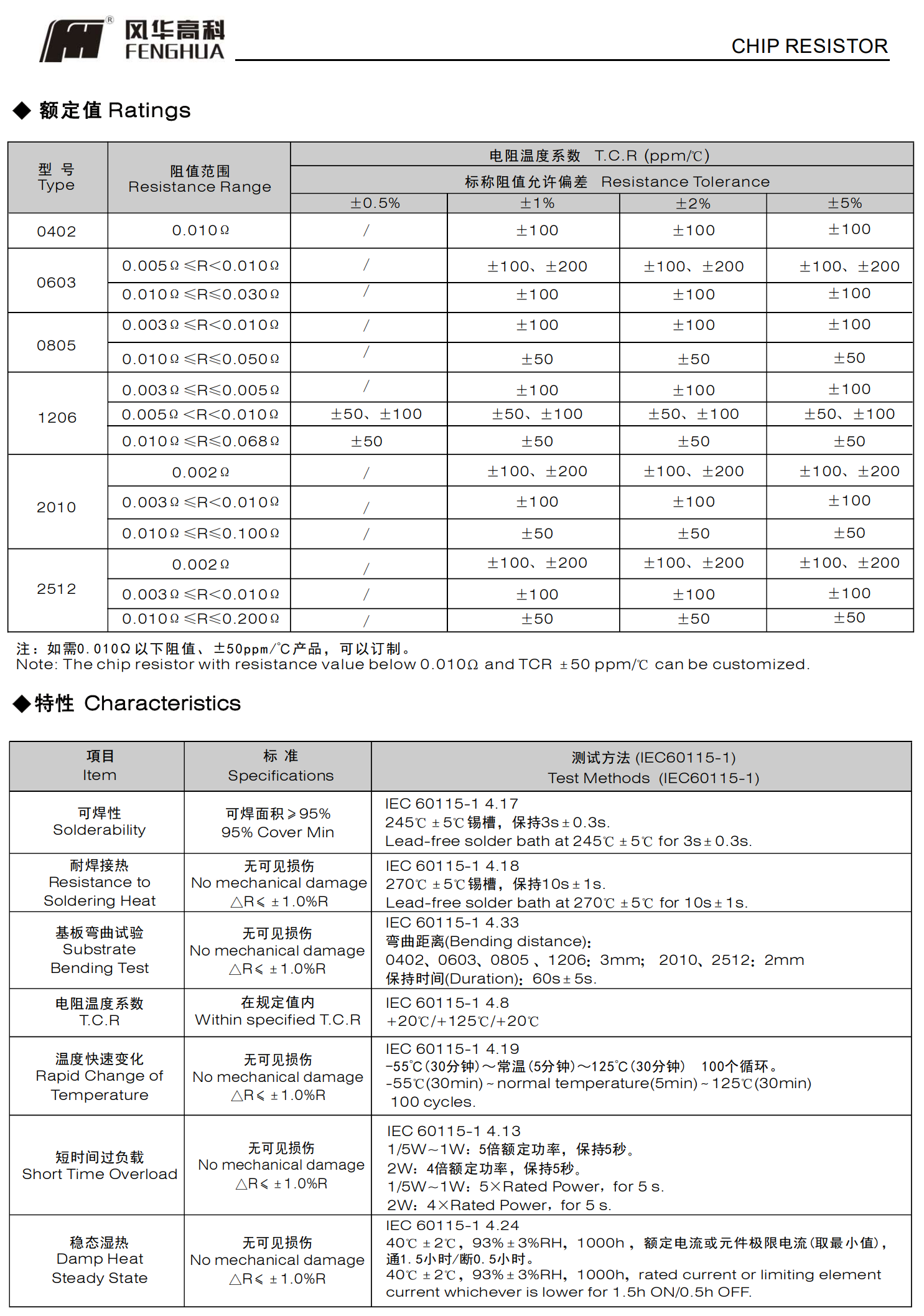 最低TCR為±50 ppm/℃
