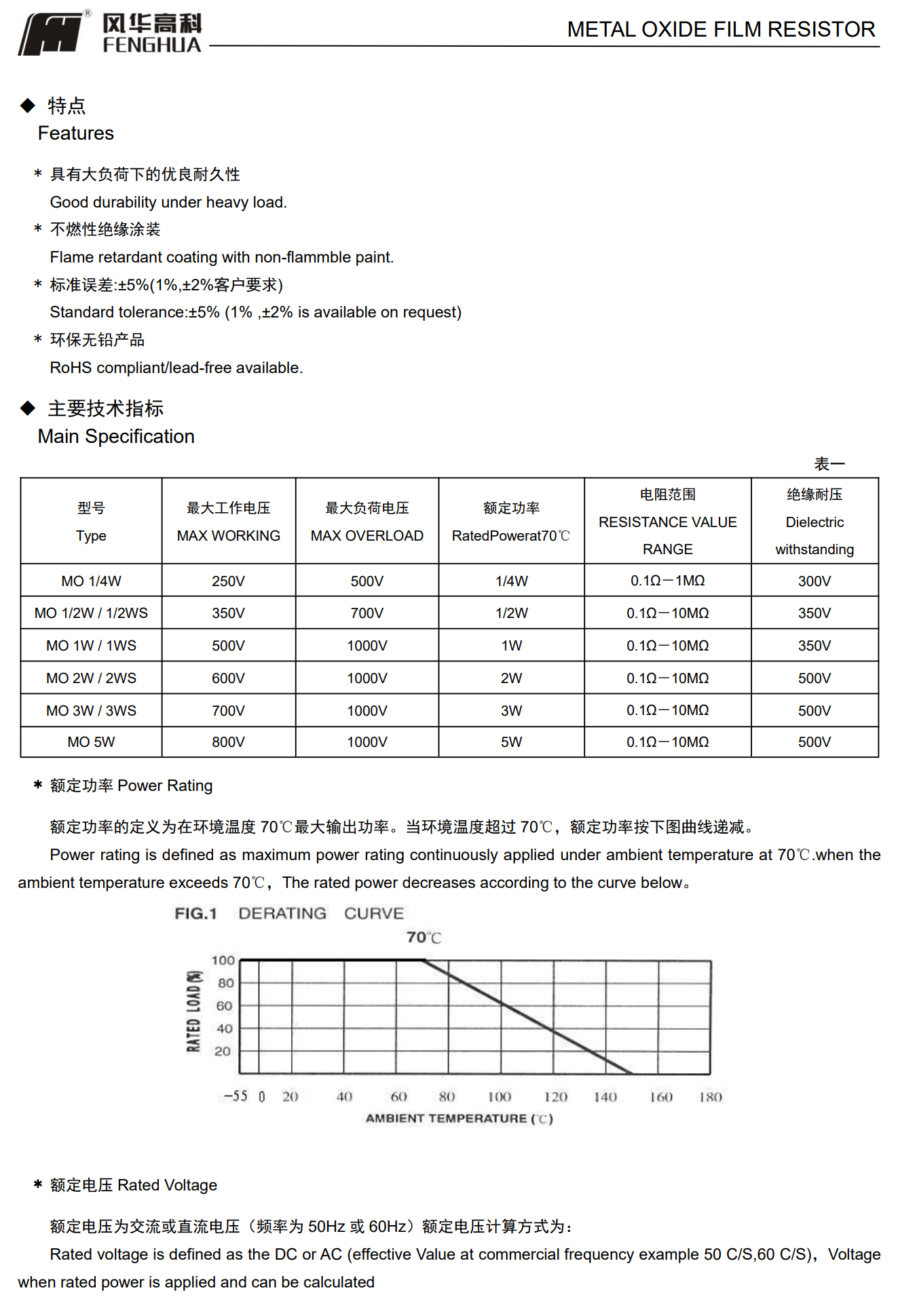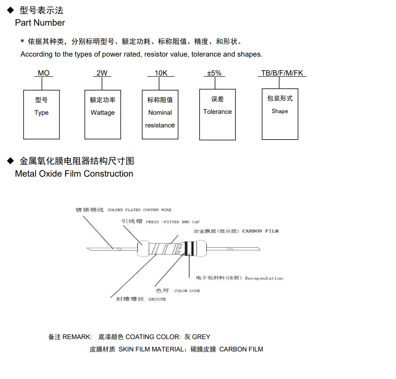 金屬氧化膜電阻◆特征* 阻值范圍寬,溫度系數(shù)小、散熱性能好、使用環(huán)境溫度高、阻燃特性好、過負(fù)荷特性好* 環(huán)保無鉛產(chǎn)品◆應(yīng)用* 適用于各種交、直流電子電路中