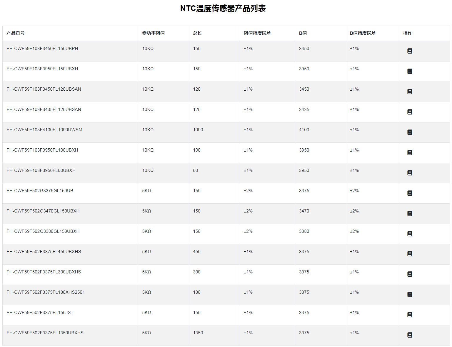 NTC溫度傳感器:NTC 熱敏電阻是一種負(fù)溫度系數(shù)電阻器,其阻值隨環(huán)境溫度的升高而降低,這種熱敏電阻是由 2 種或 4 種鐵、鎳、鈷、錳或銅的金屬氧化物經(jīng)過成型并在高溫下燒結(jié)而制得。特性:*高精度、高穩(wěn)定*反應(yīng)速度快*優(yōu)良的搞熱沖擊*耐濕性優(yōu)良